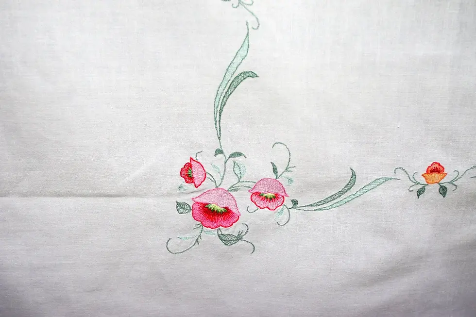 Preloved Cross-stitch Tablecloth, Floral Tablecloth, Flower Tablecloth