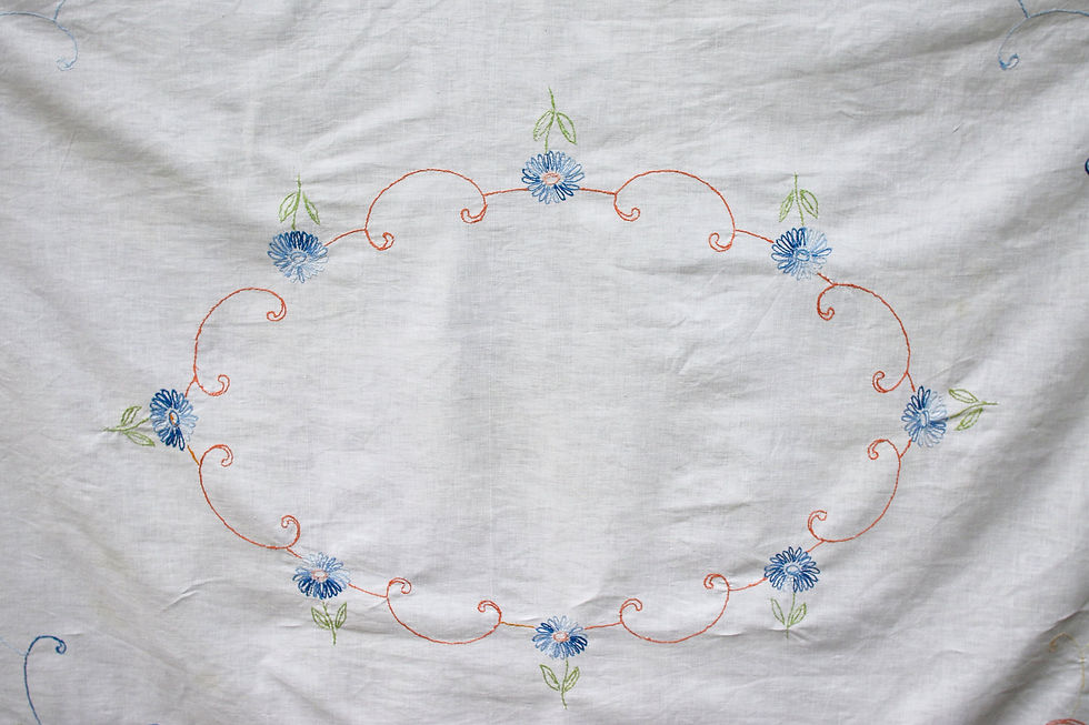 Preloved Stamped Embroidery Tablecloth, Stamped Embroidered Floral Tablecloth