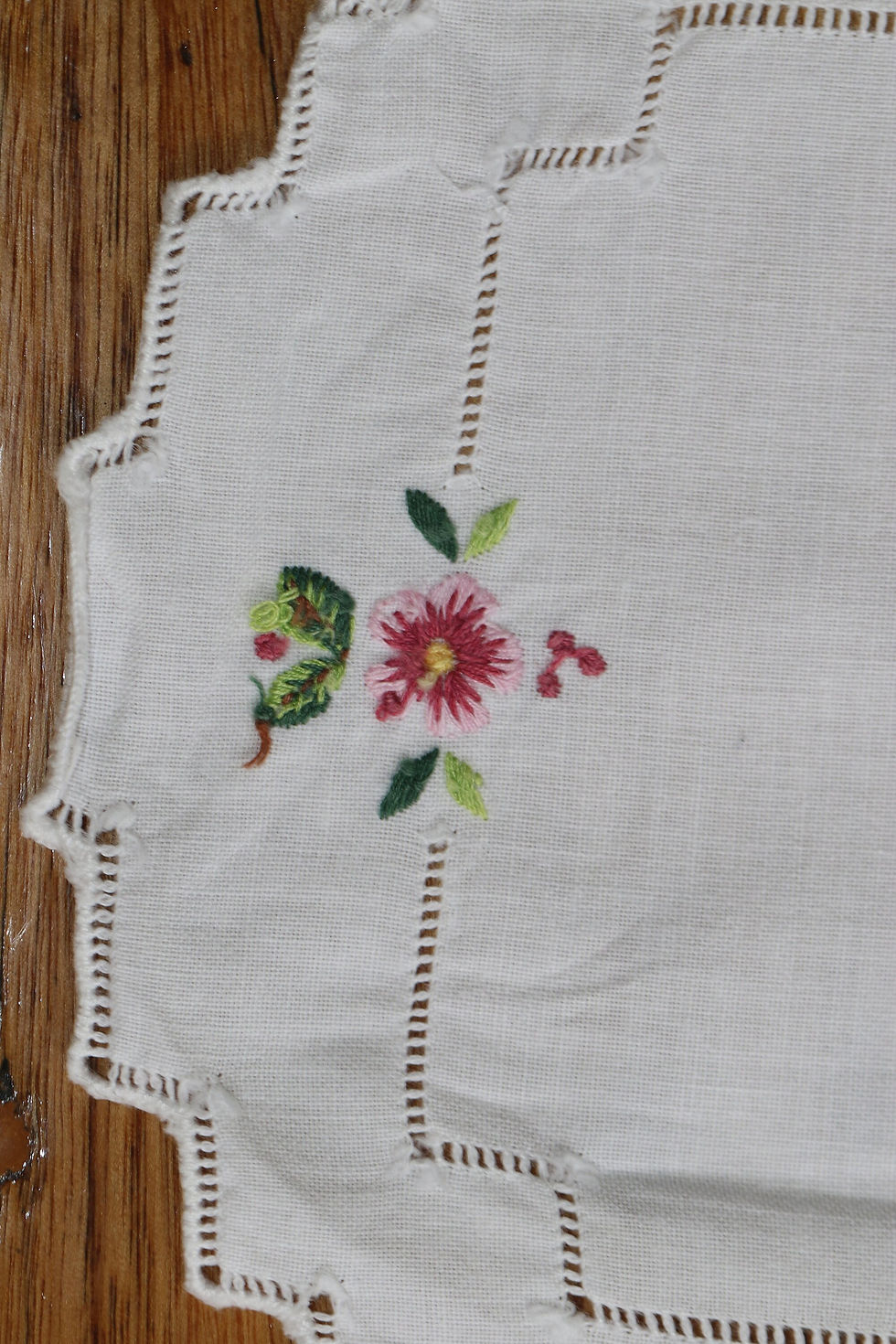 Preloved Embroidered Floral Centrepiece with two doilies tablemat with 2