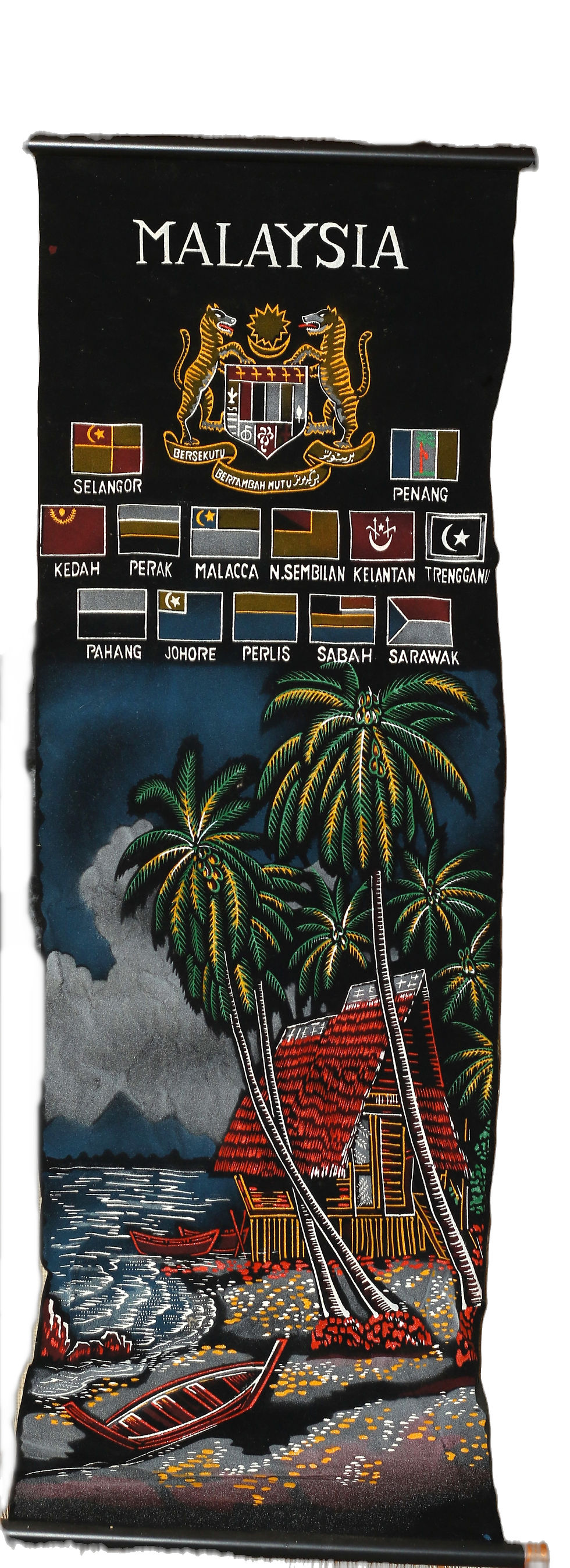 Vintage, retro-style Adelaide map souvenir wall hanging, typically made of velvet or felt material with painted details.