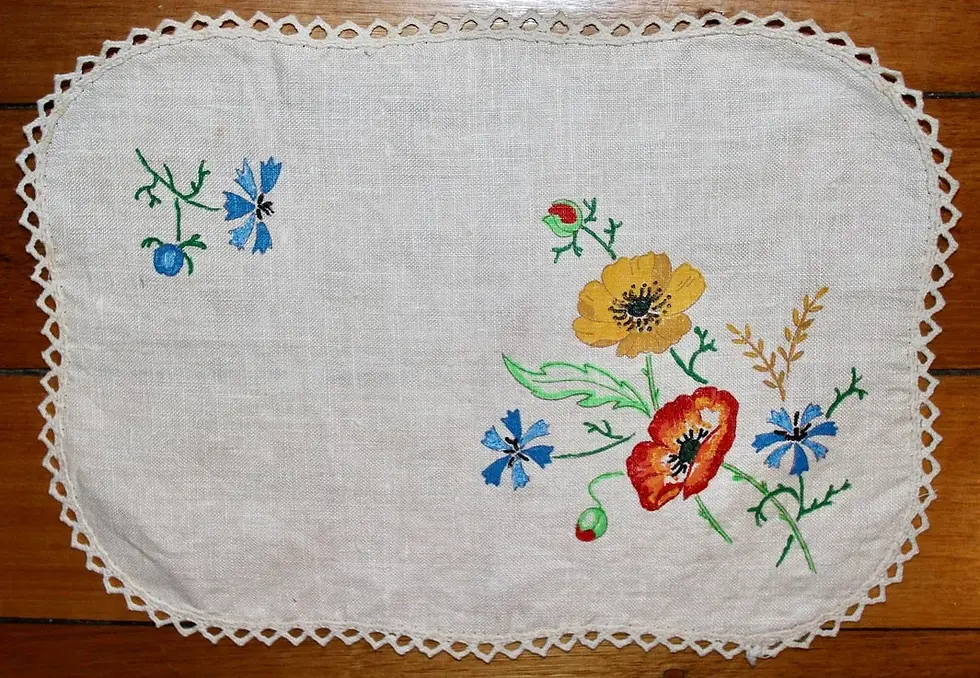 Preloved Handpainted Floral Tablemat, Floral Centrepiece
